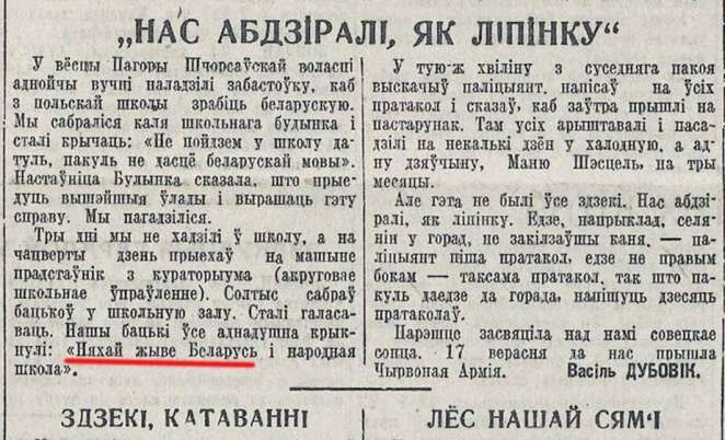 Заметку из газеты «Звязда» за 1939 года, которую разыскал Дмитрий Дрозд, опубликовал телеграм-канал «Белорускі піонэр».