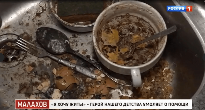 Убираться в квартире мужчина тоже не может, поэтому ему изредка помогают соседи. Однако антисанитария привела к тому, что на стенах уже образовалась плесень, в кастрюлях гниль, по всем комнатам разбросаны бутылки из-под алкоголя.