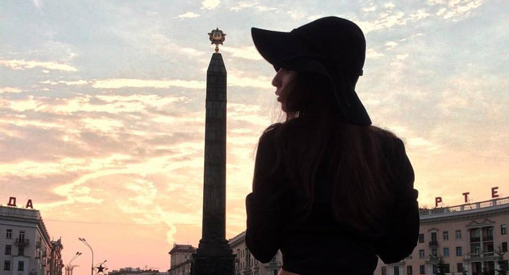 Александр Ластовский опубликовал снимок вечером в пятницу: на фото изображена девушка в кружевном нижнем белье на Площади Победы в столице, у Вечного огня.