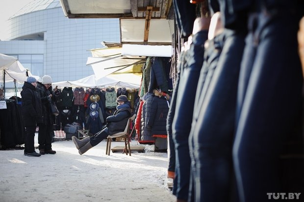 — Народ обнищал на глазах. Вот скажите, как он может купить мое пальто за 200 рублей, если у него зарплата 300? — задает риторический вопрос продавец, торгующий мужской верхней одеждой белорусского производства.