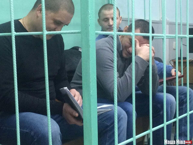 Трое обвиняемых находятся под стражей с января 2016 года. Это 39-летний Дмитрий Саникович, 33-летний Артур Зинович, и 30-летний Андрей Мазаник. У всех у них за плечами судимости: у Саниковича — одна погашенная, у Мазаника — две, а Зиновича — семь!