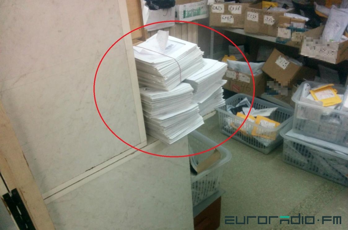 Стопка писем «тунеядцам» в почтовом отделении. Фото Еврорадио