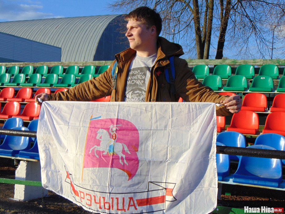 На матч местной команды с «Клецком» один из болельщиков пронес на стадион флаг с изображением герба города и надписью «Речица» на фоне бело-красно-белой ленты. Когда же он попытался вывесить этот флаг на секторе, который ранее традиционно занимали фанаты местных команд «Ведрич» и «Речица-2014», к трибуне сразу же поспешили представители власти.