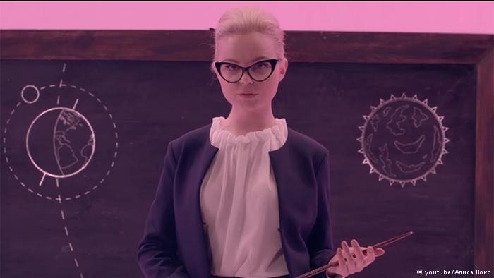 Алиса Вокс в образе сексапильной учительницы исполняет рифмованную кремлевскую методичку. О том, что на антикоррупционные митинги ходят несмышленные школьники, которые сидят на фонарях, делают грамматические ошибки на своих плакатах и надеются на обещанные Алексеем Навальным компенсации в евро (а это почти дословный пересказ песни Вокс), российская пропаганда говорит, не переставая, с конца марта.