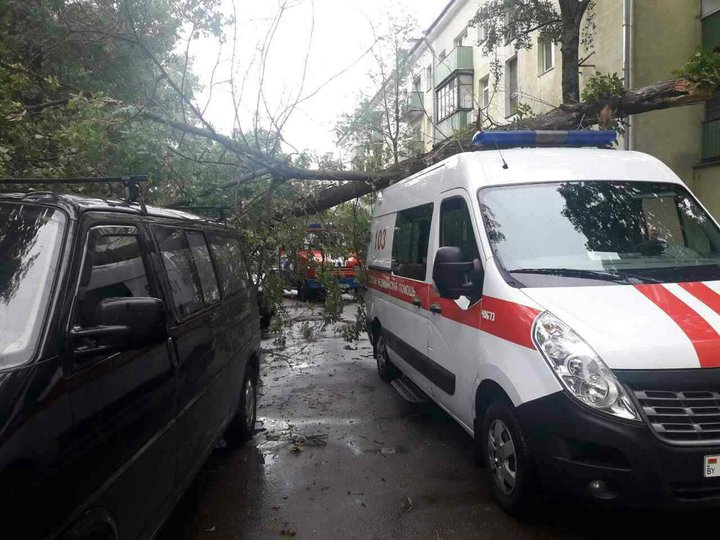 Инцидент произошел во дворе дома по улице Гая. В результате порыва ветра дерево упало на прибывший на вызов автомобиль скорой помощи. Также под упавшим деревом оказались и припаркованные Volkswagen T4 и Volkswagen Polo.