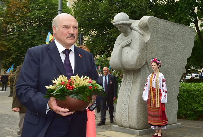 В столице Украины Александ Лукашенко посетил мемориал жертвам Голодомора, где возложил символичную композицию.