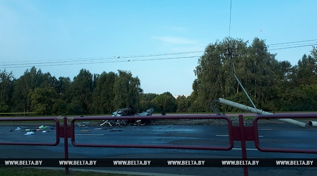 Страшная авария в Минске: автомобиль протаранил столб и превратился в груду металла