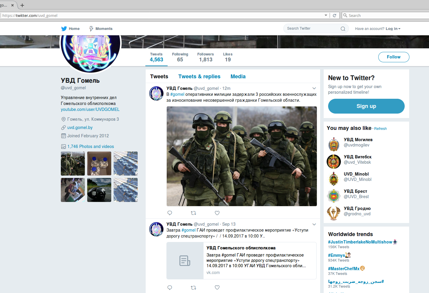 Фейковая картинка якобы из твитера белорусской милиции