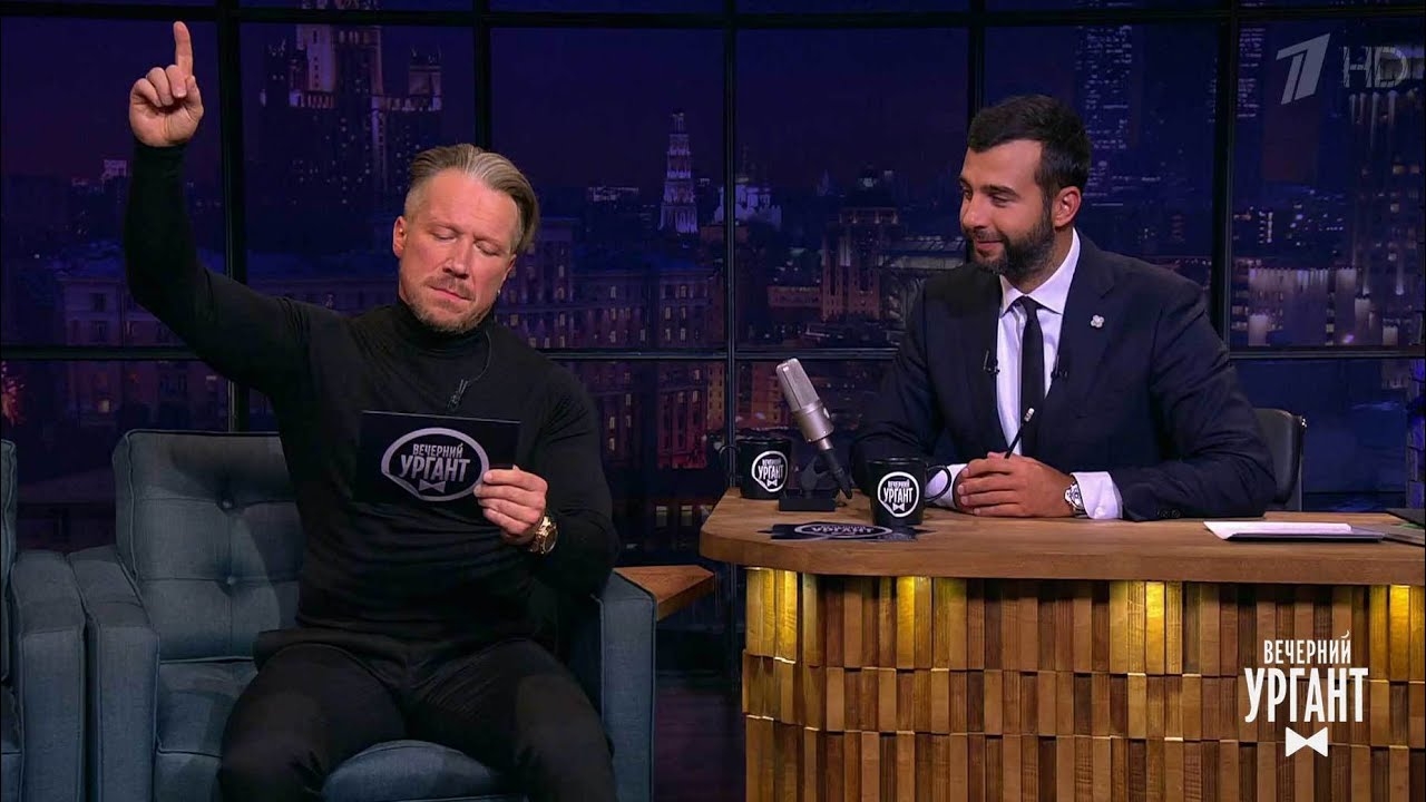 Сотворил же охальник с Первого канала на сей раз вот что. «Посмешищем Ургант попытался сделать шуточную попытку «воскресить» лежащего в позе трупа в студии «Вечернего Урганта» актера Кравченко, сыгравшего погибшего смертью храбрых героя фильма Макара Морозова, сообщением, что ему не заплатят за участие в сериале, после чего актер Кравченко якобы «восстает из мертвых», имитируя жуткий хрип.