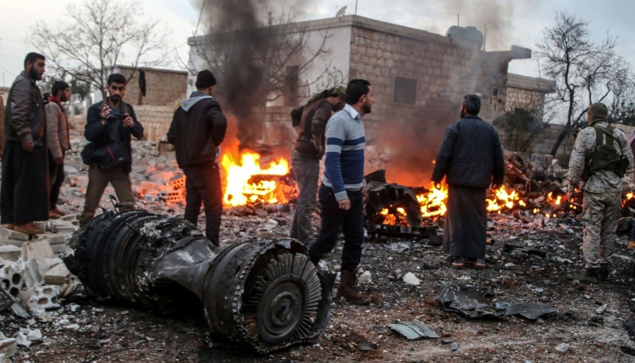 Обломки сбитого Су-25 в восточном Идлибе, 3 февраля 2018 года. Фото: Abdalla Saad / EPA / Scanpix / LETA