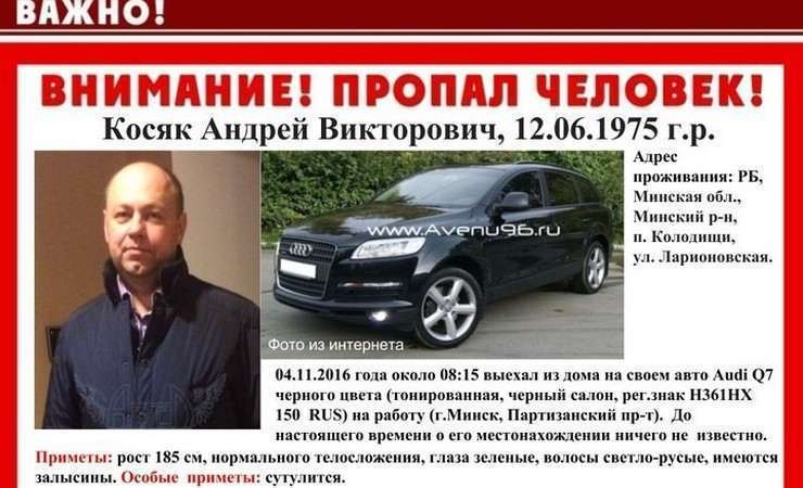 Но спустя некоторое время в Минском районе был обнаружен тот самый автомобиль Audi Q7 и при его осмотре были зафиксированы следы убийства. В ходе дальнейшей работы данная версия получила подтверждение — было возбуждено новое уголовное дело по соответствующей статье Уголовного кодекса.