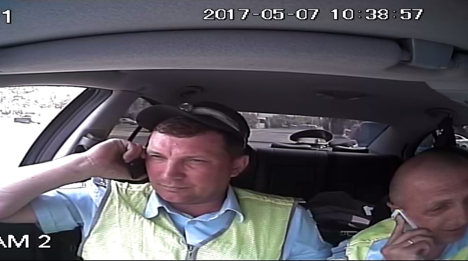 Далее инспекторы продолжают сидеть в автомобиле – несколько раз Марухно пытается открыть к ним дверь, чтобы понять, почему его задержали. В разговорах между собой инспекторы говорят, что за рулем ехал вовсе не Марухно, а его жена. После чего, они уезжают, но вскоре им снова поступает команда – во что бы то ни стало задержать своего тогда еще коллегу. Инспекторы открыто говорят, что не хотят этим заниматься и что у них будут проблемы. Опубликовать саму запись не представляется возможным, так как почти весь диалог служителей закона состоит из нецензурных выражений.