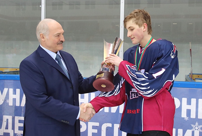 Младший сын президента стал лучшим бомбардиром турнира «Олимпийские надежды». Награду ему вручил Александр Лукашенко.