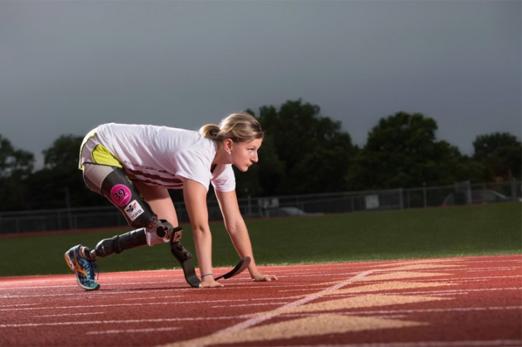 Из-за чернобыльской радиации она родилась в Беларуси без ног и лишь с четырьмя пальцами на обеих руках. Сегодня вместо ног у девушки – две приемные гильзы из углеродного волокна, один коленный сустав из титана и ступни из углеродных пластин.