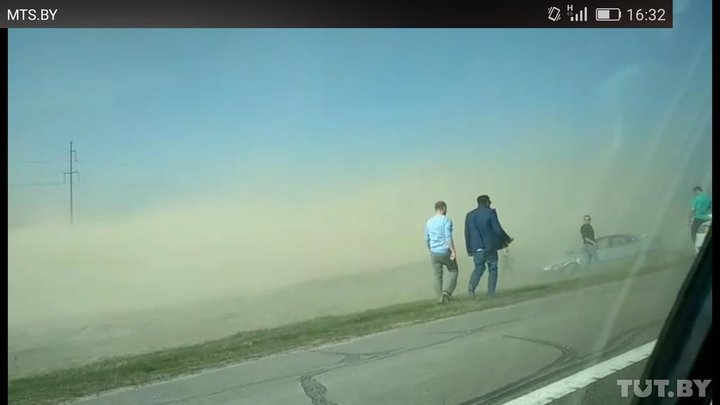 «С полей (вероятно) поднялся сухой песок. Много аварий, есть пострадавшие», — сообщил один из читателей.