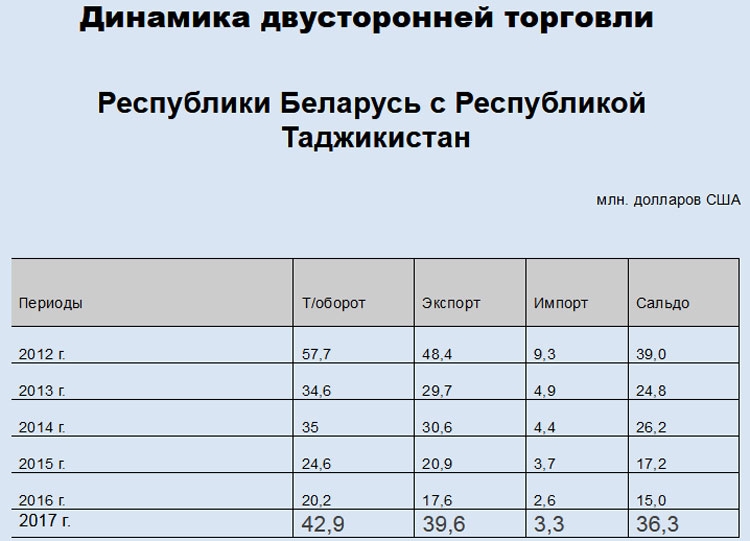 Второй причиной отсутствия настроения может быть состояние дел в торговле с Таджикистаном.