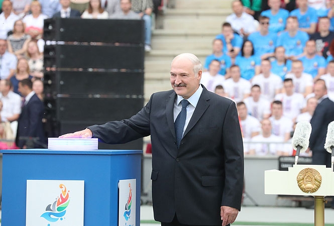 — Я очень рад, что сегодня нет свободных мест на этом стадионе, — заявил во время торжественного открытия Лукашенко.