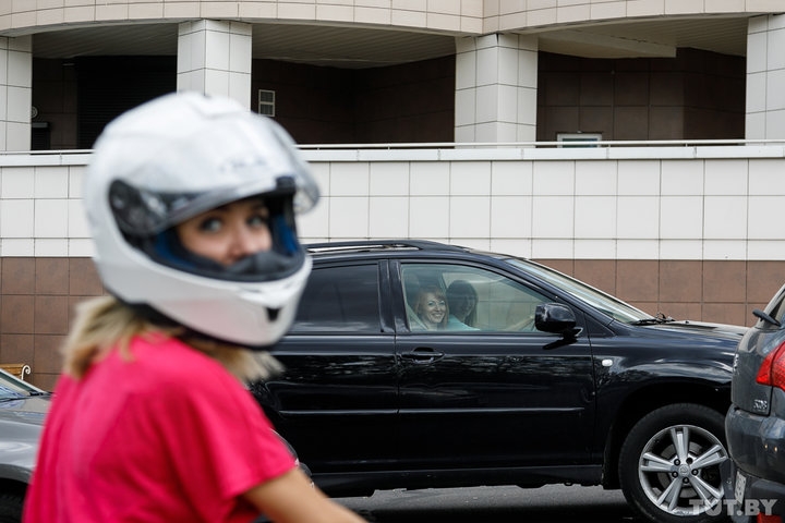 Хрупкая девушка в мини-платье и с мотошлемом на голове — явление для белорусских дорог редкое. Но именно так чаще всего ездит наша героиня — скутеристка Арина. Неудивительно, что на нее в потоке все обращают внимание, а мужчины-водители вообще вовсю сигналят, машут руками, подмигивают, пока стоят на красном, дарят подарки, пытаются познакомиться и приглашают на свидание.