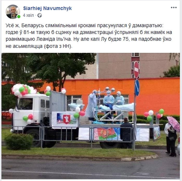 «А ведь этот день мог быть светлым днем освобождения Минска, днем города, и не вызывать у граждан Беларуси столько дискуссий, особенно в свете последних экономических и социальных достижений, пенсионных лишений и прочего».