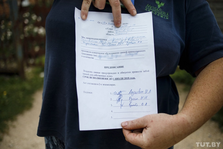 В Заболотье чуть больше 20 домов, от деревни до леса рукой подать. В основном, здесь живут дачники, а местные, которых не так много, крепкие хозяйственники: держат свиней, кур, овец. В конце июня представители ветслужбы и милиционер приехали сюда, чтобы сообщить новость: до 1 июля от свиней нужно избавиться и выдали специальный акт.
