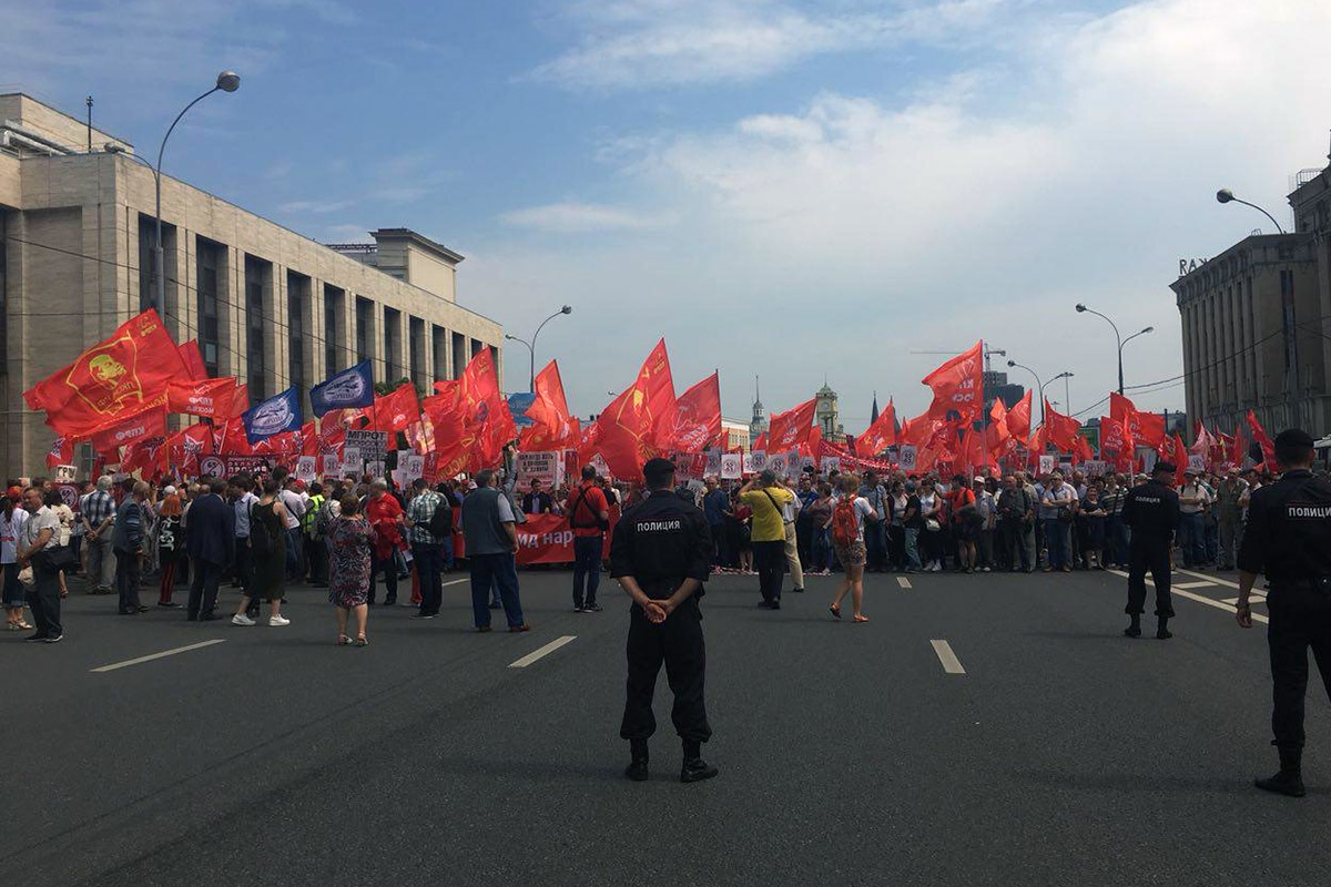 В России вчера прошли массовые протесты против повышения пенсионного возраста. В Москве на проспект Сахарова на организованный КПРФ митинг 28 июля вышло более 12 тысяч человек. «МБХ-медиа» рассказало, как это было.