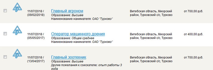 Данные Государственной службы занятости о вакансиях в ОАО «Турково», которое в пятницу посетил Александр Лукашенко