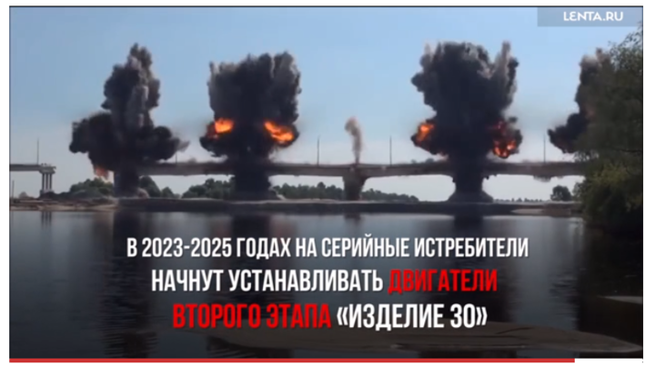 Видео о Су-57 несколько раз выходило на сайте издания. В нем рассказывается о характеристиках истребителя. В ролике демонстрируется взрыв моста в четырех точках. Этот взрыв выглядит точно так же, как демонтаж аварийного моста в Житковичском районе на кадрах, снятых МЧС Беларуси.