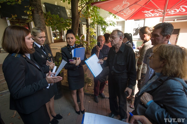 Днем в среду во дворике дома прямо у столиков кафе «Набоков» шла эмоциональная дискуссия между жильцами с одной стороны и судебными приставами, представителями администрации и ЖКХ Ленинского района — с другой. Причиной стал двенадцатый пункт договора, который предложили заключить собственникам квартир.