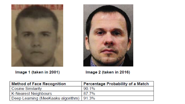 Для независимой проверки сходства фотографий (фотография Мишкина из национального паспорта, датированная 2001 г., и фотография «Петрова» из загранпаспорта, датированная 2016 г.) Bellingcat и The Insider обратились к профессору Югейлу из Университета Брэдфорда, эксперту в области визуальных вычислений (visual computing) и симуляции изменения возраста. Профессор пришел к однозначному выводу, что эти две фотографии принадлежат одному лицу с учетом 15-летней разницы в возрасте (полный отчет — здесь).