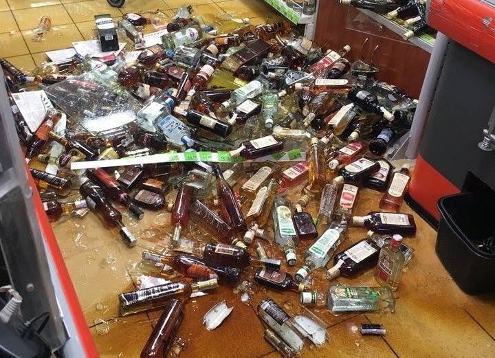 Очевидцы утверждают, что, вероятно, стеклянные полки не выдержали веса выставленной на них продукции. Рухнули на пол и разбились несколько десятков бутылок с алкоголем разной крепости.