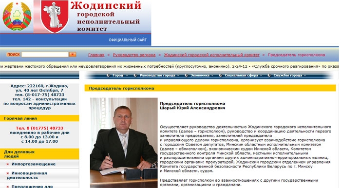 На сайте Жодинского горисполкома Шарый еще числится руководителем города