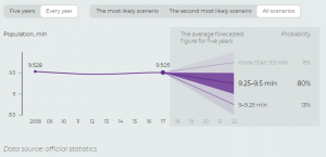 Хотя белорусы, рождённые после 2017 года, будут жить примерно на 10 лет дольше своих родителей, демографическая нагрузка на них также возрастёт. Эксперты прогнозируют медленное снижение населения Беларуси с 9,5 миллионов в 2017 году до 9,25-9,4 миллионов в 2022 году. Таким образом, сегодняшние белорусские малыши, похоже, будут работать дольше своих родителей, чтобы поддерживать перегруженную пенсионную систему.