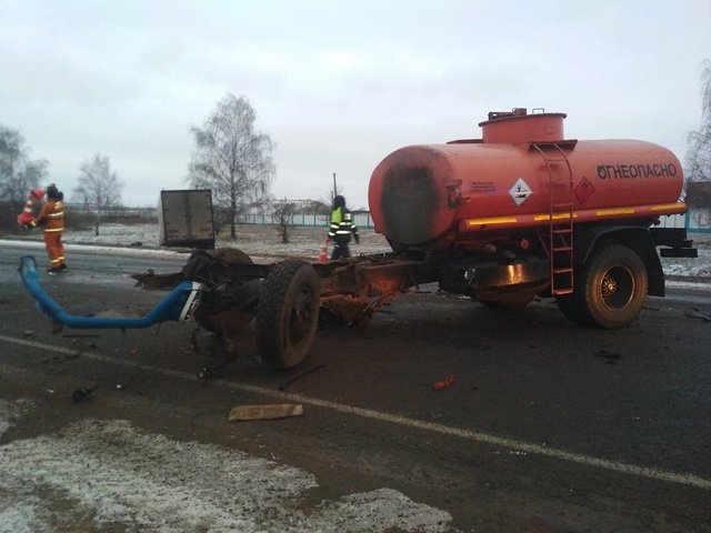 Жуткое ДТП под Слуцком: после столкновения с фурой бензовозу оторвало кабину с водителем