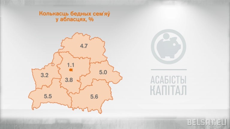 Главное, время идет, а расхождения в богатстве в разным углам страны только растут. Судите сами. В Минске формально бедных всего 1%. В четыре раза меньше, чем в среднем по стране. А в Брестской и Гомельской областях в пять раз больше, чем в Минске. Там каждый шестой ребенок получается бедным. Это уже слишком. Поскольку делается источником социальных проблем.