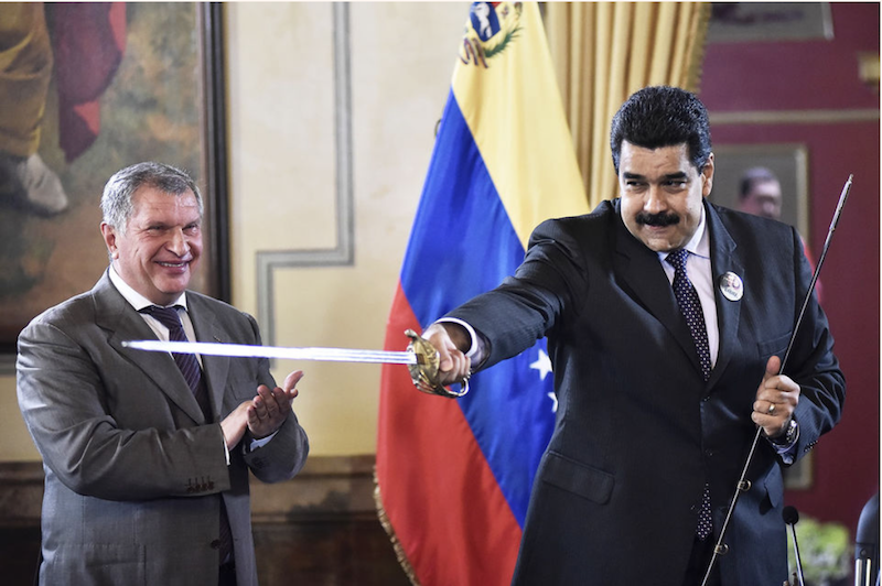 В результате «Роснефть» вложила 17 млрд долларов, а «Газпром» — еще 7 млрд в страну, где трупы взрываются в моргах. Перспективы этих инвестиций очень простые. Если Мадуро свергнут, то денежки пропали. Если Мадуро останется у власти — с помощью пыток, концлагерей и colectivos, — то он кинет Россию сам.
