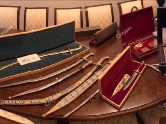 В ходе следственных действий сотрудники СК и ФСБ изъяли слитки золота, редкие сабли, мечи и другие ценности. При этом на кадрах видеосъемки можно увидеть только небольшую часть из того, что обнаружили силовики при обысках.