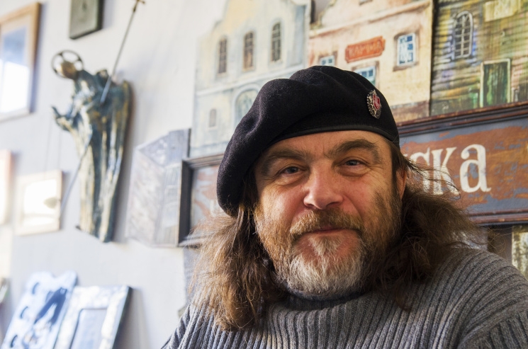 С Алесем Суровым мы встретились возле его мастерской в одном из гродненских двориков в самом центре города и решили прогуляться по морозному Гродно.