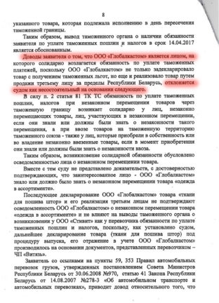 На попытки перевозчика добавить в качестве соответчика в «Глобалкастом» объяснили, что, мол, у них много грузов и они просто забыли проверить несколько фур. Несмотря на то, что «Глобалкастом» нес ответственность за груз и как собственник, и как таможенный агент, судья Гродненского экономического суда Марина Рослик приняла это объяснение и осудила только водителя и собственника фуры, которая везла груз.