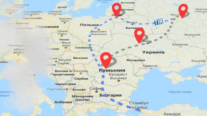 Пройдя из Турции Болгарию и Румынию, фуры с одеждой не заворачивали через Украину в Россию, хотя это наиболее оптимально по расстоянию. Они едут дальше — на север, через Польшу, — в литовское Ковно, оттуда в Беларусь и только потом попадают к российскому покупателю.