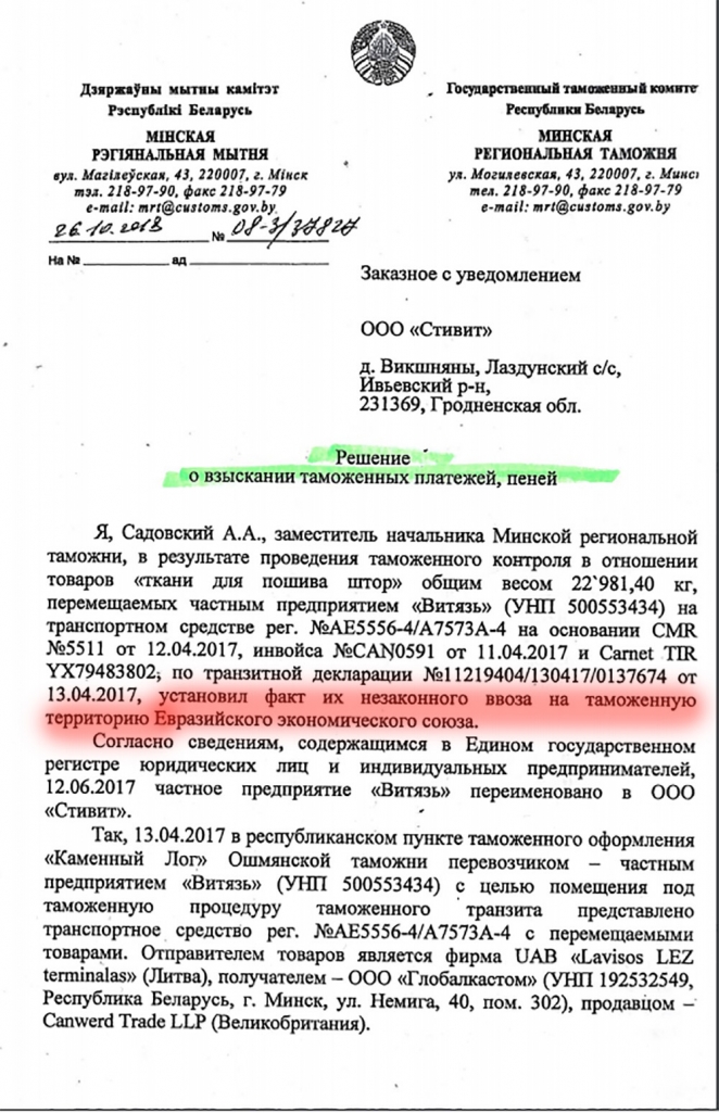 Но осудили не собственника груза – логистическую компанию «Глобалкастом», которая покупала товар в Турции, растаможивала его в Беларуси и получала выгоду благодаря более низким таможенным платежам… Суд признал виновным водителя грузовика и компанию-владелицу машины.