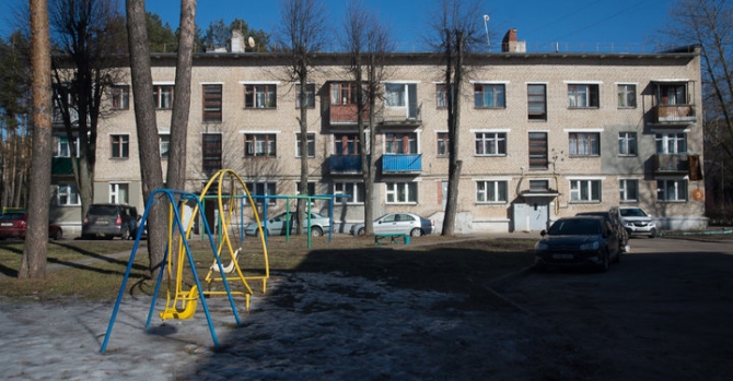 Снаружи здания ничем не отличаются от обычных трехэтажек старой постройки. Во дворе собралась кучка местных жителей.