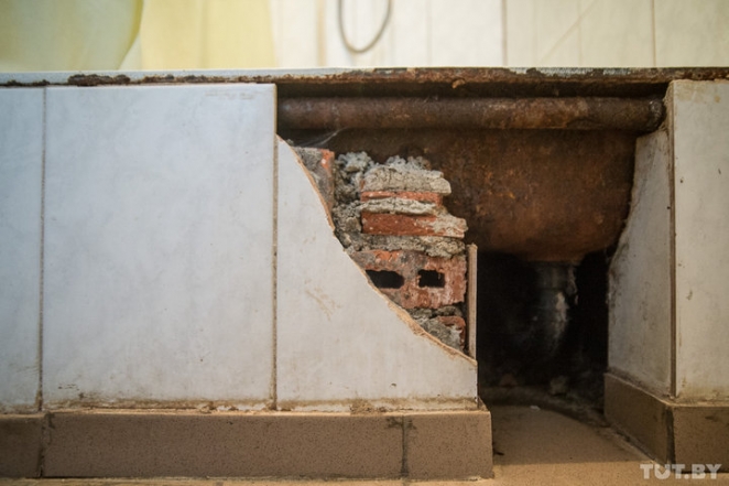 — Это еще одна наша беда — неисправная электропроводка. Из-за этого уже дважды общежитие горело. И с канализацией беда — постоянно забивается и затапливает, плавает… Как так сказать что, чтоб не ругаться? Все трубы ржавые и текут. Вызывали сантехника через 115. Пришел, посмотрел, сказал, что купить нужно, тогда он, мол, придет и починит. То есть ремонт за наш счет? Хотя в договоре прописано, что инженерно-техническое оборудование и места общего пользования должен ремонтировать «Домэнергосервис», — с возмущением говорит Анжела. — Я уже не говорю про плесень, которая у нас везде. Ее невозможно убрать. Кроме того, в душе гигантская дыра в потолке. Когда моешься, оттуда может посыпаться грязь на голову. А пару раз даже черви падали.