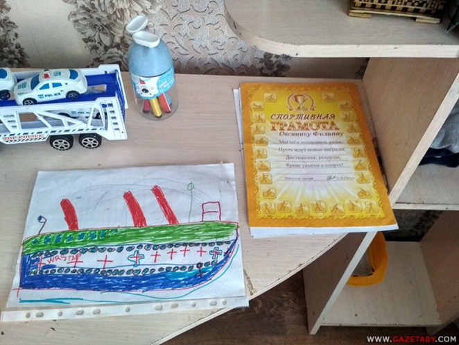 Тем не менее, в квартире чисто. Видно, что за жильем Людмила следит. На письменном столе лежат детские рисунки, грамота одного из сыновей за спортивные достижения.