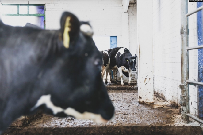 Андрей ведет нас по зданиям фермы, показывает доильное отделение, вентилятор, который не включили при Лукашенко. Просит все посмотреть и показать «как есть».