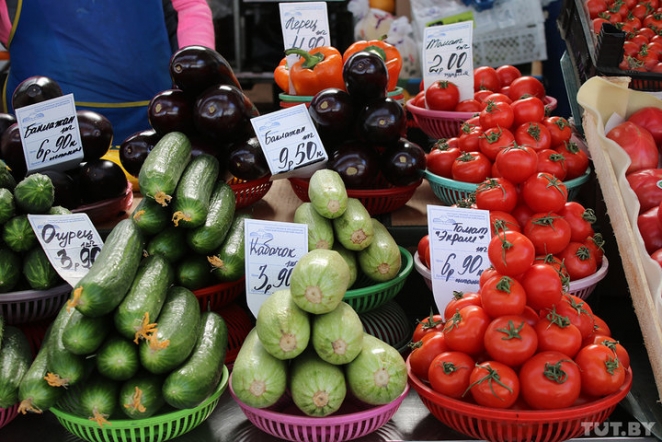 На овощных рядах цены тоже снизились практически на все. Симпатичные помидоры без труда можно найти за 4 рубля. А в нескольких местах неплохие есть даже по 2 рубля. Гладкие огурцы в среднем продают по 3,9 рубля, в паре мест есть по 3. А вот колючие огурцы сбрасывать цену не торопятся, хотя производители говорили, что закупочная цена у них снижается. Кило стоит 5−7 рублей.