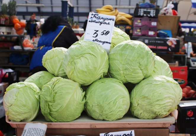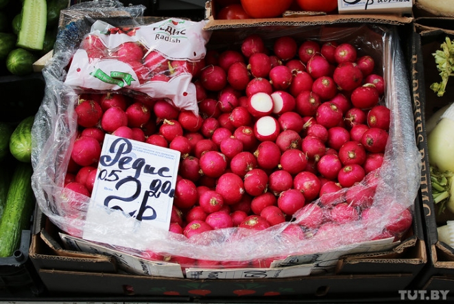 На рядах уже красно от свежей редиски. Килограмм стоит 4,5 рубля. Также на рыке можно купить цукини по цене от 3 рублей, капусту этого года, правда, импортную, по 3,5 рубля.