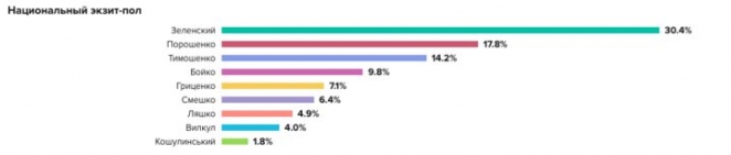 Данные национального экзит-пола в Украине: Зеленский и Порошенко во втором туре