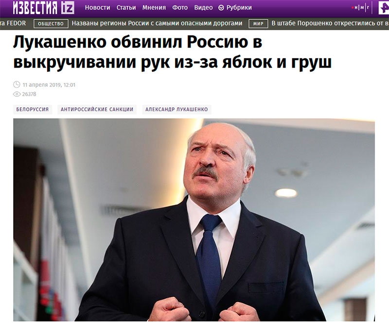 Газета.ru назвала заявления из Минска местью за яблоки и констатировала: Лукашенко вступил в торговую войну с Россией.