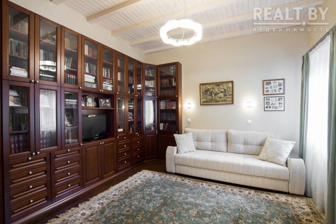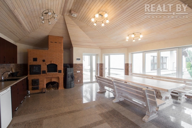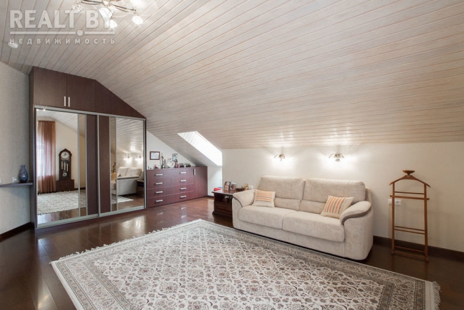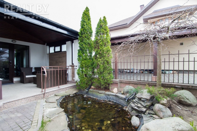 «На первом этаже расположены: гостиная, столовая, кухня, спальня с санузлом, гостевая комната, санузел, в котором установлена душевая кабина с баней, кабинет, тренажерный зал, постирочная комната. На втором этаже расположены: три комнаты, просторная спальня с панорамным окном, санузел, гардеробная комната. В доме сделан современный ремонт из качественных строительных материалов. Дом полностью укомплектован всей необходимой мебелью и бытовой техникой, в каждой комнате установлен кондиционер. Грамотная планировка дома позволяет чувствовать себя комфортно в любое время года. Автономное отопление. Для парковки авто есть гараж и место на участке. На придомовой территории выполнен ландшафтный дизайн, установлена просторная беседка, создан декоративный пруд», — говорится в объявлении.