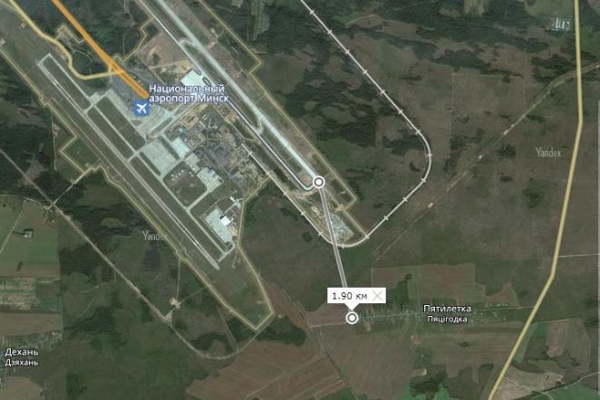 Расстояние от деревни Пятилетка до новой взлетно-посадочной полосы. Фото: скрин с Яндекс карты